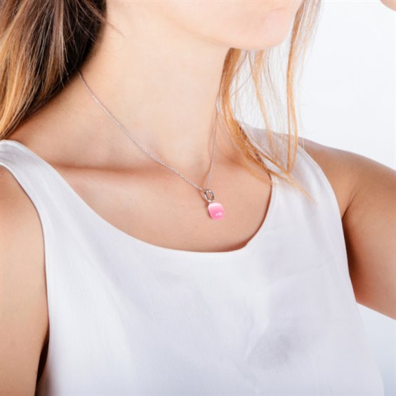 Girocollo Morellato in argento 925 rodiato e occhio di gatto rosa. Pendente cm 2 con pietra rosa. Catena maglia rolò. Misura regolabile da cm 40 a cm 45.