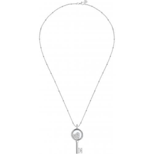 COLLANA COLLEZIONE SCRIGNO D'AMORE CON CIONDOLO A FORMA DI CHIAVE E ALL'INTERNO UN CUORE CON PAVE DI ZIRCONI. LUNGHEZZA DA 40 A 45