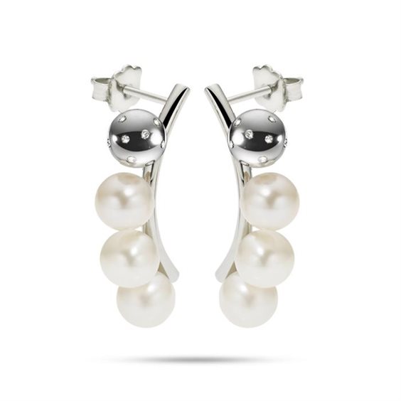 Orecchini in acciaio maglia tubolare con perle naturali di acqua dolce bianche e cristalli DIMENSIONI: Lunghezza cm.2.8 dimensione perle mm.6/6.5. La perla, il fascino della luna, prendetene un pezzo e indossatelo, riflessi romantici vi circonderanno, una collezione delicata, elegante, abbinabile con facilità.