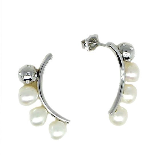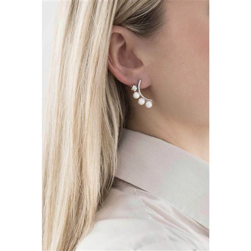 Orecchini donna in acciaio 316L , pendenti cm 2,5 , perle coltivate d'acqua dolce mm7 , colore bianco , cristalli bianchi. Immagine indicativa , la confezione può variare in forma e colore.