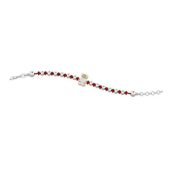 Il bracciale con l'orsetto Tato dai piccoli nodini e perline d'argento, addolcisce il polso del tuo bambino/bambina. Nel colore rosso. BRACCIALE IN CORDINO ROSSO E ARGENTO. CHIUSURA REGOLABILE.