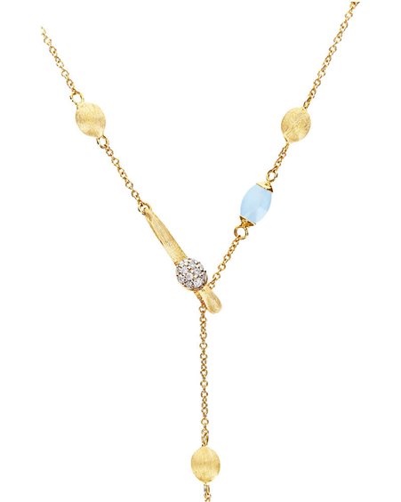 COLLANA LARIAT "SOFFIO" IN ORO, DIAMANTI E ACQUAMARINA Boules in oro 18kt e acquamarina milky si rincorrono in questa collana fresca, contemporanea e contraddistinta dalla nostra immancabile versatilità. La chiusura ad amo coronata da un raffinatissimo dettaglio in diamanti, summa di estetica e funzionalità, si apre e chiude come una molla, consentendo di regolare ed interpretare la collana nei più svariati modi. A voi la scelta tra un’interpretazione più morbida e classica, allacciando la chiusura a una delle boules finali, o più trasgressiva, optando per una versione più accollata. Un gioiello versatile, leggero e capace di adattarsi a tutte le vostre sfaccettature! Ref. CS22-587 Lunghezza: 55,00 cm