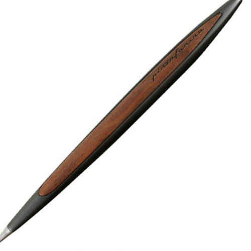 Matita Napkin Forever della collezione Pininfarina Cambiano nella variante in alluminio color nero opaco e inserti in legno, con scatola in Noce massello con funzione display. Dimensioni box 19,5cm x 5cm x 2,7cm. La penna Forever Pininfarina è composta da un corpo in alluminio satinato con inserti in Noce massello con puntale in Ethergraf, l'esclusiva lega di metalli protetta da brevetto italiano, forgiata da artigiani orafi e assemblata allo stelo solo in un secondo momento. A differenza di tutti gli altri strumenti per disegno o scrittura, il segno lasciato avviene per una forma di ossidazione della carta dovuta al contatto con la punta in Ethergraf®. Lo strumento quindi non rilascia materiale, non si consuma e risulta essere eterno. Inoltre il segno lasciato è molto particolare perché assomiglia al tratto di una matita ma è indelebile come una penna, questo particolare lo rende unico al mondo. La Pininfarina Cambiano rappresenta la versione di punta della gamma Forever. Essa prende ispirazione dalla concept car Cambiano, per la quale il team Pininfarina sotto la guida del Design Manager Paolo Trevisan, ha ideato linee eleganti ed essenziali, che grazie alla combinazione di materiali innovativi e classici, come l’alluminio ed il legno, conferiscono una personalità unica all’oggetto.