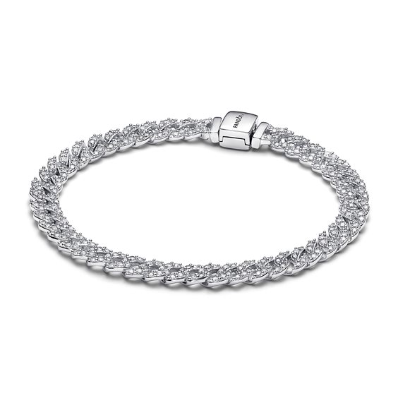 Bracciale Catena Pavè Argento Sterling 925; 264 zirconia cubica incolore con lavorazione a pavè e taglio brillante rotondo