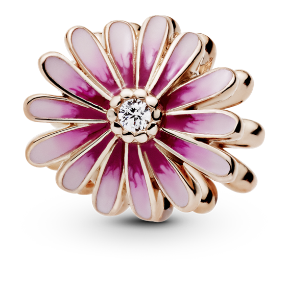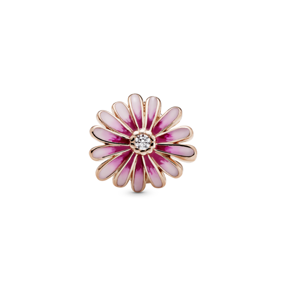 Charm Pandora Margherita Rosa in lega metallica placcata oro rosa 14kt, smalto rosa e zirconia cubica