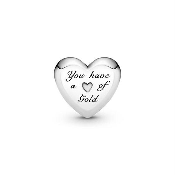 Charm con cuore dorato a cupola in argento Sterling 925 e oro giallo 14kt, incisione sul retro You Have a Heart Of Gold