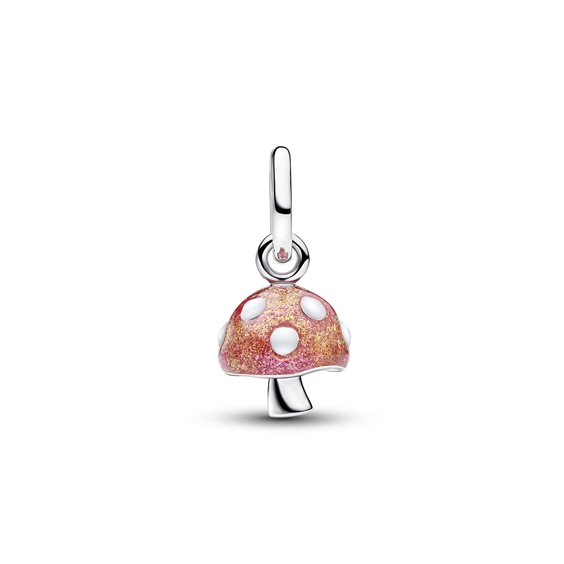 Pendente Fungo in Argento Sterling 925 dangle con smalto bianco e rosso che si illumina al buio