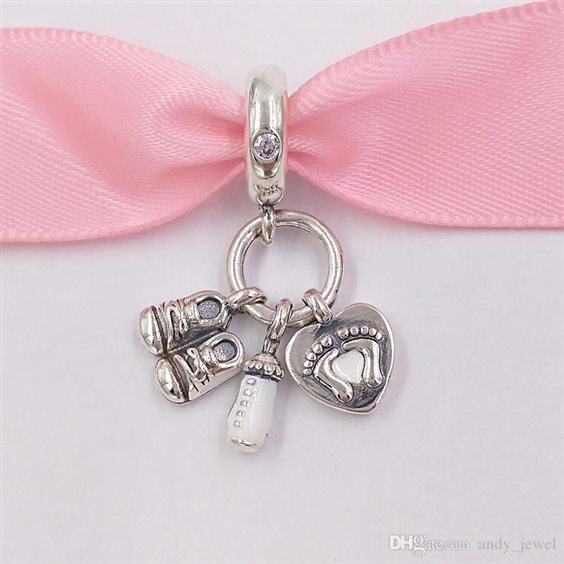 Cosa c’è di meglio per celebrare la nascita di un nuovo bebè che regalare un charm pendente in Argento Sterling 925 dalla splendida lavorazione a mano? Il gioiello riunisce un’adorabile triade tradizionalmente associata a un neonato: biberon, scarpine e un cuore che contiene le impronte dei piedini di un bebè. È decorato da pietre di zirconia cubica scintillanti e smalto bianco applicato a mano che aggiungono brillantezza e splendore. Indossalo per ricordare il nuovo arrivo o regalalo a una neo-mamma a te cara.