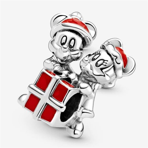 Disney, charm Mickey Mouse e Minnie con pacchetto regalo Rendi le feste ancora più speciali con questo charm Regalo con Mickey Mouse e Minnie della collezione Disney x Pandora. Rifinito a mano e realizzato in Argento Sterling 925, il gioiello presenta Mickey Mouse e Minnie, gli amatissimi personaggi Disney, con occhi e ciglia intagliati per enfatizzarne i lineamenti. Mickey Mouse indossa una sciarpa e tiene Minnie per la spalla. Entrambi indossano berretti natalizi decorati da smalto rosso applicato a mano, coordinati con il regalo che tengono davanti a loro, completato da un nastro e da un fiocco. Regala questo charm, decorato dai loghi Pandora e Disney sul retro, a una persona speciale per dimostrare che sei felice di passare le feste con lei.