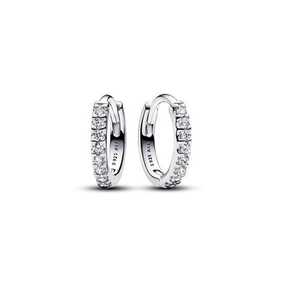 Cerchi Piccoli Pavè Argento Sterling 925; 16 zirconia cubica incolore con lavorazione a pavè e taglio brillante rotondo