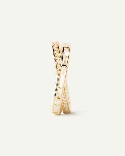 Material: sterling silver Finishing: 18k gold plating Stones: white zirconia Stones measurements: 3 x 1.5 mm / 1 mm Ring total width: 6 mm Weight: 4.83 g