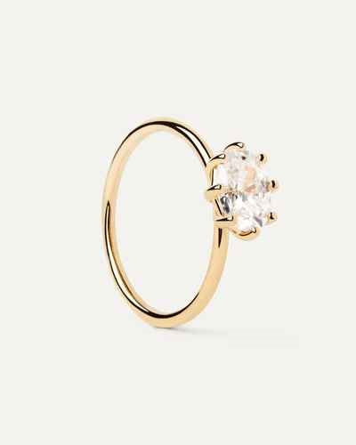 Materiale: argento sterling Finitura: placcatura in oro 18k Pietre: zirconi bianchi Dimensioni delle pietre: 6x8 mm Spessore dell’anello: 1,4 mm Peso: 1,92 g
