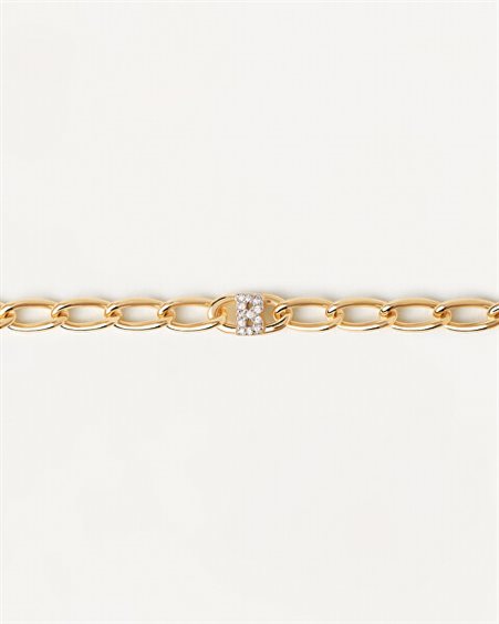 MATERIALE: Argento sterling FINITURA: Placcatura in oro 18K PIETRE: Zirconi Bianchi DIAMETRO DELLE PIETRE: 0,8 mm DIMENSIONI DELLA LETTERA: 4,5 x 4 mm LUNGHEZZA DELLA CATENA: Lunghezza regolabile da 19 cm a qualsiasi dimensione desiderata SPESSORE DELLA CATENA: 4,5 mm PESO: 5,10 g Lettera B
