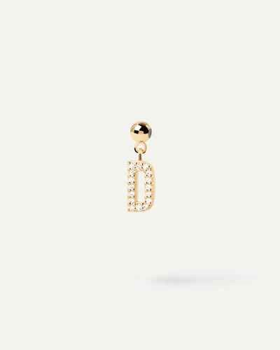 Materiale: argento sterling Finitura: placcatura in oro 18k Pietra: zirconi bianchi Misura del charm: 7 mm x 3 mm Peso: 0,44 g