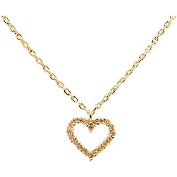 Collana Da Donna Di Pd Paola Della Collezione Ultra Basics, cuoricino pietre rosa, realizzato In Argento Placcato Oro 18 K Di Colore Oro. Lunghezza: 50cm.