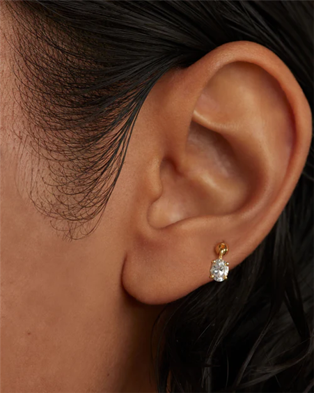 MATERIALE: Argento Sterling FINITURA: Placcatura in oro 18k PIETRA: Zircone DIMENSIONI PIETRA: 5 x 4 mm SISTEMA DI CHIUSURA DEL PIERCING: Speciale retro di sicurezza (rivestito in silicone) e perno più corto (8,5 mm) progettato per la presa e il comfort di tutti i giorni PESO: 0.63g