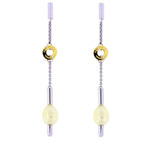 Orecchini Pendenti Pianegonda in Argento 925 con inserti in oro giallo e perle bianche
