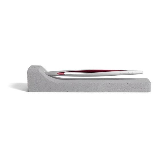 Strumento di scrittura con punta in etergraf (materiale brevettato), con particolare rosso. la struttura è realizzata in alluminio Ergal, lo stesso utilizzato nell'industria aerospaziale. Prodotto artigianale realizzato a mano in Italia.