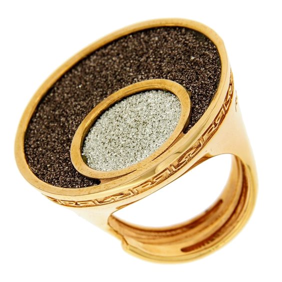 Anello Rebecca Half Moon in Bronzo con Tessuto Diamantato Marrone e Bianco