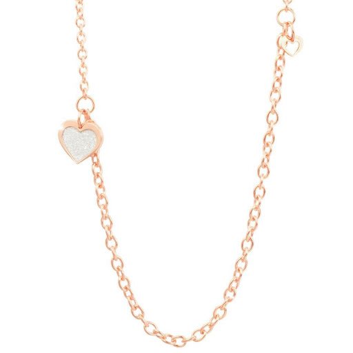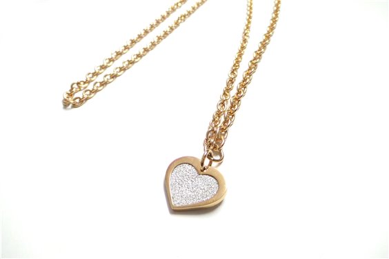 Collana in bronzo lunga cm 80 , con ciondolo a cuore cm 1,5 con glam film argento da entrambi i lati. Possibilità su richiesta di mettere una chiusura.