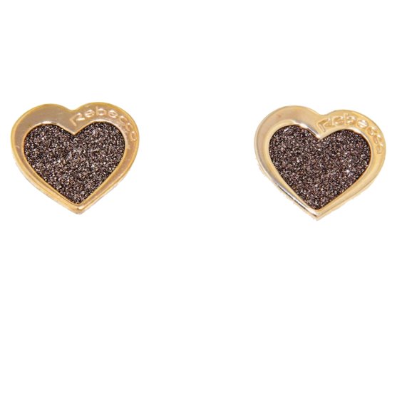 Orecchini a Forma di Cuore Rebecca Mon Amour in Bronzo Rosato con Tessuto Diamantato Nero 16x14mm