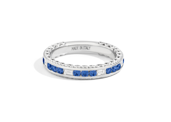 Fedina girodito Recarlo Anniversary con zaffiri blu taglio brillante 0,75 ct e diamanti taglio baguette 0,35 ct
