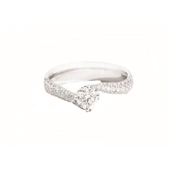 Anello solitario con diamante centrale da 0.50pt e pavè di diamanti sul gambo per un tot di 0.45 pt.