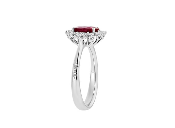 Anello Recarlo Anniversary Gems in oro bianco 18kt con rubino rosso taglio ovale 1,52ct e contorno di diamanti 0,534ct F Vs di cui 2 ai lati taglio cuore