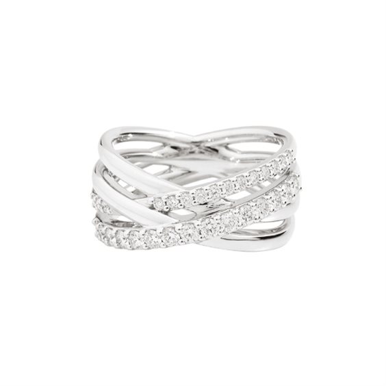 Anello Recarlo Melody a fascia in oro bianco 18 kt, due fascie lucide e due fascie con diamanti 0,62ct G Vs