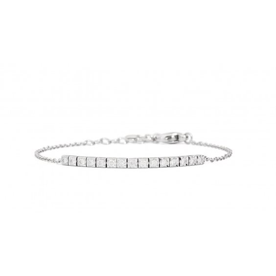 Bracciale tennis in oro 750 e diamanti Recarlo Brand: Recarlo Genere: Donna Articolo: Bracciale Modello: Tennis Materiale: Oro 750%o / 18kt Peso (gr): 3.17 Dall' analisi tecnico valutativa risulta che le pietre presentano le seguenti caratteristiche: Diamanti naturali con massa pari a (caratura): ct. 0,25 Grado caratteristiche interne (purezza): SI Colore (secondo scala internazionale): G Bracciale tennis da donna Recarlo. Bracciale modello tennis realizzato in oro 750 – 18 kt con diamanti naturali certificati. Luminoso ed elegante il bracciale tennis è l’accessorio perfetto per ogni occasione. La garanzia che accompagna il gioiello al momento dell'acquisto non ha scadenza e certifica in qualsiasi momento la veridicità del prodotto acquistato e la qualità dei materiali preziosi utilizzati per la sua realizzazione