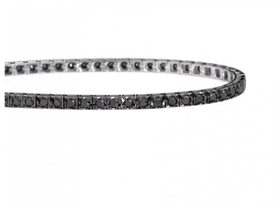 Bracciale tennis in oro bianco 18 kt e diamanti neri taglio brillante.