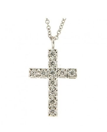 Girocollo Croce Recarlo in Oro Bianco 18Kt; Diamanti