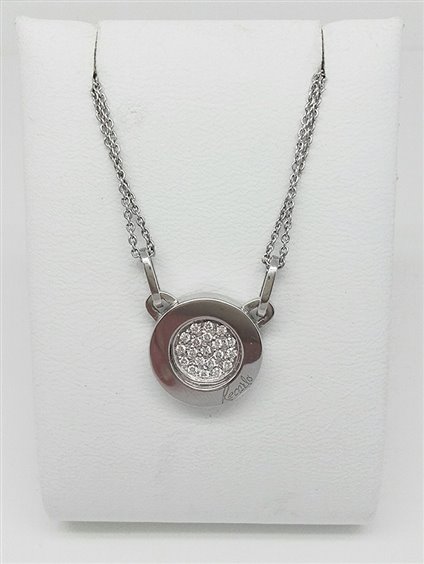 Girocollo in oro bianco 18Kt ,catenina doppia dotata di tre anellini che permettono la chiusura del gioiello a tre lunghezze diverse, pendente centrale con diamanti taglio brillante.