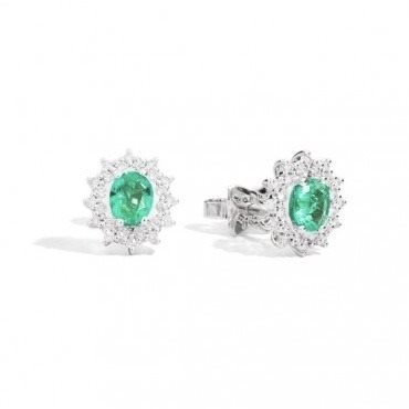 ORECCHINI RECARLO IN ORO BIANCO CON SMERALDI (CT. 0,70) E DIAMANTI NATURALI (CT. 9,29) COLORE F. PUREZZA VS. PESO GR. 3,32. SCATOLA ORIGINALE E GARANZIA.