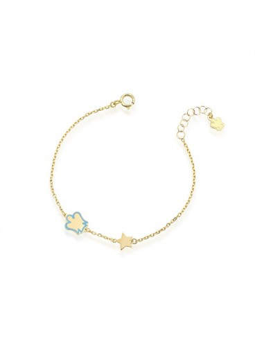 Bracciale bambino roberto giannotti, collezione giardino degli angeli, in oro 9kt e smalto blu, lunghezza 14/16cm, diametro stella 0, 6cm angelo 0, 7cm
