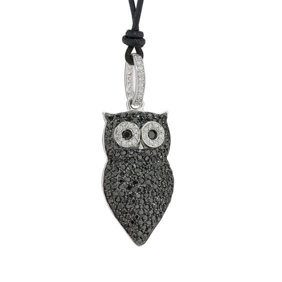 Girocollo Roberto Giannotti collezione Misteri della Notte con cordino nero e ciondolo a forma di gufo in argento 925 ricoperto di zirconi bianchi e neri