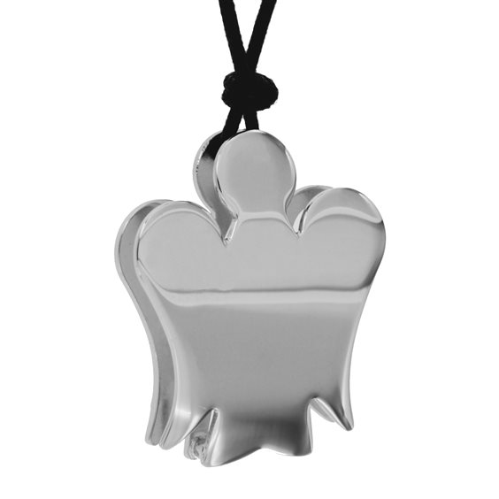 Girocollo Roberto Giannotti collezione Angeli con cordino nero regolabile e ciondolo a forma di angelo a doppia lastra in argento 925. Larghezza 2,9cm altezza 3,3cm