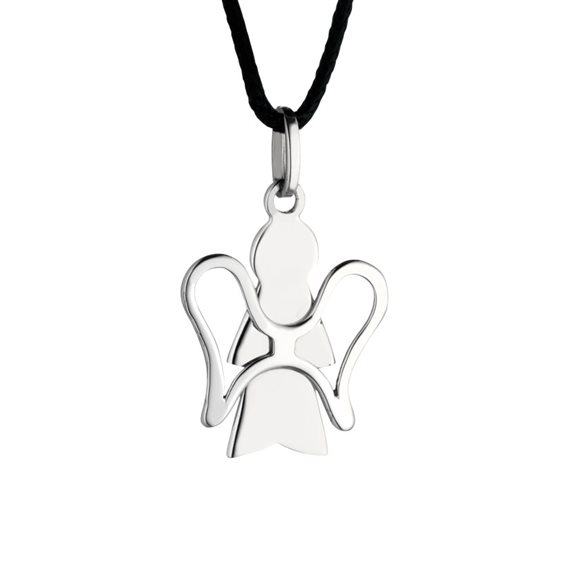 Girocollo Roberto Giannotti collezione Angeli con cordino nero e ciondolo a forma di angelo in oro bianco 9kt