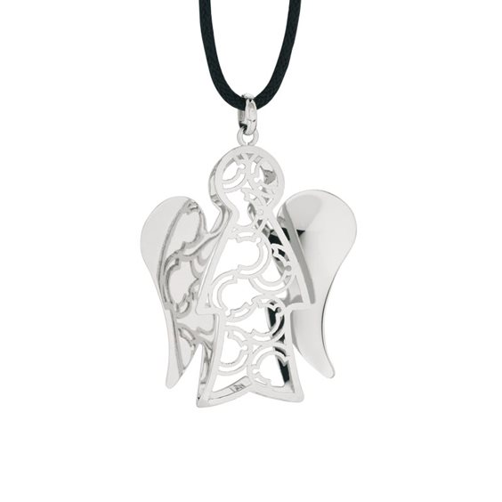 Girocollo Roberto Giannotti collezione Angeli con cordino nero e ciondolo a forma di angelo in oro 18kt bianco