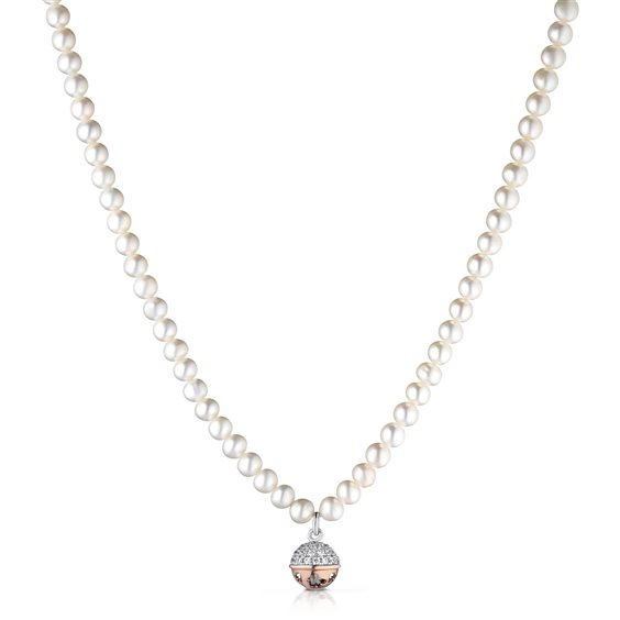 collana donna roberto giannotti, sfa128, collezione chiama angeli, novità 2018, dii perle con pendente chiama angeli in argento rosato e zirconi bianchi. lunghezza collana 40/43 cm, diametro perla 4, 5/5 mm e diametro sfera 1 cm Perle, Argento, Zirconi, Argento Rosato,