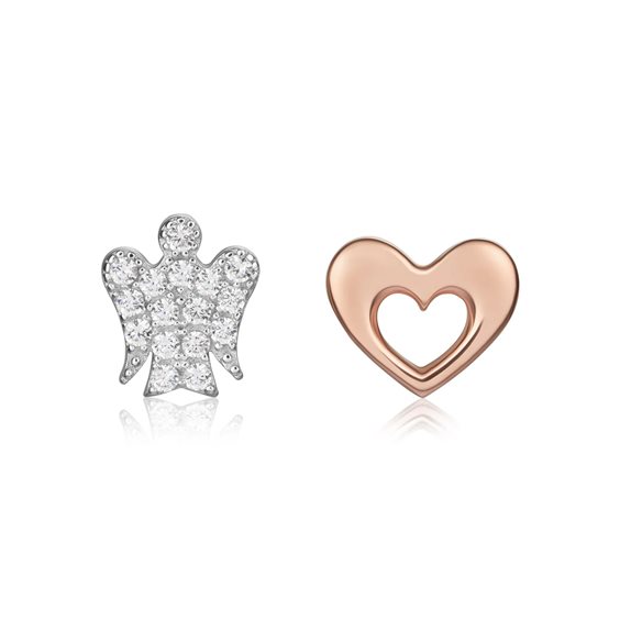 Orecchini con angelo pavé e cuore in argento rosato. L'angelo, da sempre simbolo di protezione è protagonista di questo gioiello. Un bracciale raffinato, impreziosito dalla luce del pavé di zirconi bianchi e dal cuore in argento rosato. Il regalo perfetto, un messaggio d'amore da donare alla persona che ci sta a cuore. Argento 925 angelo: base 0,7 cm - altezza 0,85 cm cuore: base 0,9 cm - altezza 0,75 cm