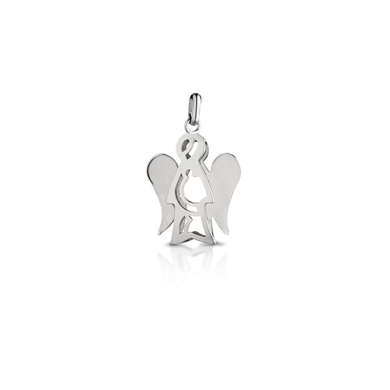 Pendente angelo piccolo in oro bianco,con laccetto in filo cerato nero incluso. Angelo base 1,2 cm. - altezza 1,3 cm.