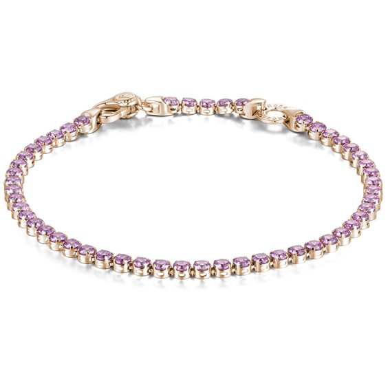 Tennis in argento rosato con zirconi color rosa/violetto chiusura a moschettone. Possibilità di inserire n.1 charm Rosato nell'apposito spazio