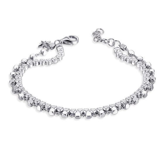 Bracciale componibile doppia catena in argento 925‰ e zirconi bianchi