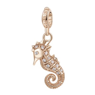 CAVALLUCCIO MARINO "In fondo al mar…" Charm in argento 925‰ a forma di cavalluccio marino con placcatura oro rosa e 24 zirconi bianchi Significato: Fedeltà Dimensione: 2.2cm Rosato interpreta il concetto di gioielleria in chiave moderna, connubio tra tradizione ed innovazione. Le moderne tecniche di progettazione e l’esperienza dei maestri orafi hanno permesso di raggiungere un livello qualitativo senza eguali. Gioielli in argento 925‰ donano un tocco delicato e al tempo stesso deciso alla donna che li indossa. Rosato, espressione di eleganza distintiva, conquista le donne più raffinate e ricercate.