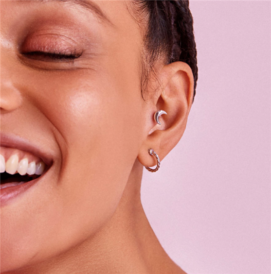 Orecchino singolo a lobo a forma di luna in argento 925‰