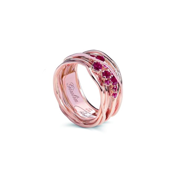 Anello Filodellavita Ten Collection 10 fili in oro rosa 18kt e 10 rubini. mis. 14. In regalo il mini filo della vita in oro rosa 9kt con catena diamantata da 90 cm in argento brunito.