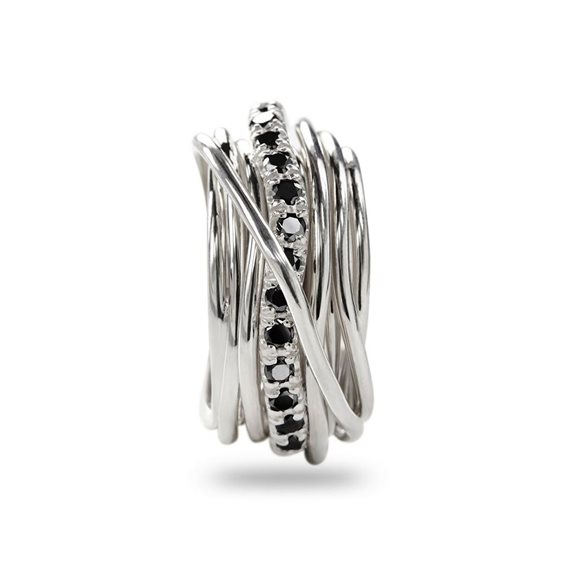 Anello Filodellavita 13 Fili in Argento 925 con Diamanti Neri 0,80ct