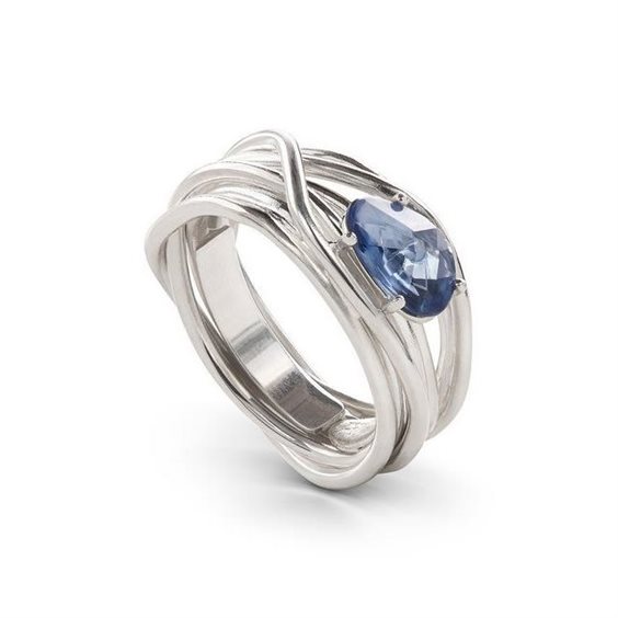 Anello filo della Vita a 7 fili con zaffiro blu/azzurro da 0,55 ct. Essendo fatti a mano ogni anello si differenzia dall'altro, come a rappresentare l'unicità della vita.