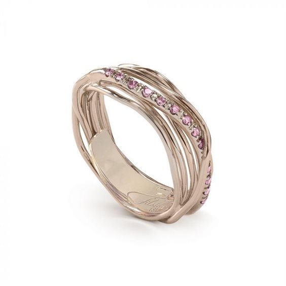 Anello Filodellavita Luce 7 Fili in Oro Rosa 18kt con 14 Zaffiri Rosa 0,26ct